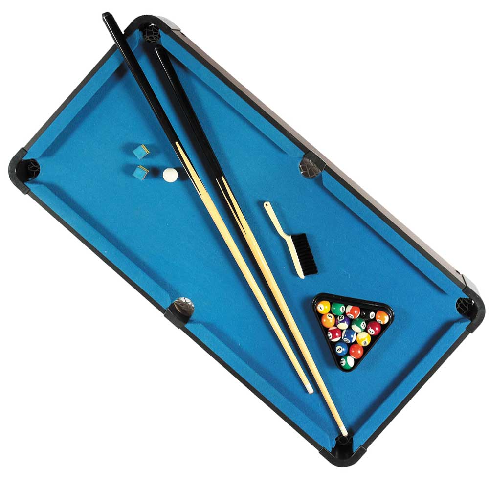 Compact size, big enough for a challenging game of pool, but small enough to easily store. Crafted from durable CARB certified MDF material. No cheap particleboard! Playing surface is fully supported and stabilized by rugged L-Shaped legs with non-skid pads that protect table and floor surfaces. Comes complete with Blue felt, 36 inch cues, billiard balls, chalk and a racking triangle. Instantly turns any room into a competitive action packed pool room! Ships UPS. 180-day Limited Warranty