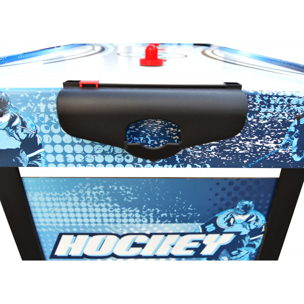 If you are looking for quality, performance and value, look no further than the 66 inch Blue Wave Enforcer Air Hockey Table. The Enforcer offers the best features available at a very affordable price. The table is crafted from strong CARB Certified MDF material, far superior than many of the competitor's flimsy particle board and plastic tables. The table features built-in goal boxes and both electronic and manual slide scoring systems to easily keep track of all the action. The table's high output 110V electric blower, super slick play surface, heavily weighted strikers and pucks, and sturdy L-shaped legs with independent stabilizing leg levelers ensures that your air hockey table will hold up to even the most vigorous game play. 180 Day Limited Warranty. A perfect addition to the recreational player's game room!