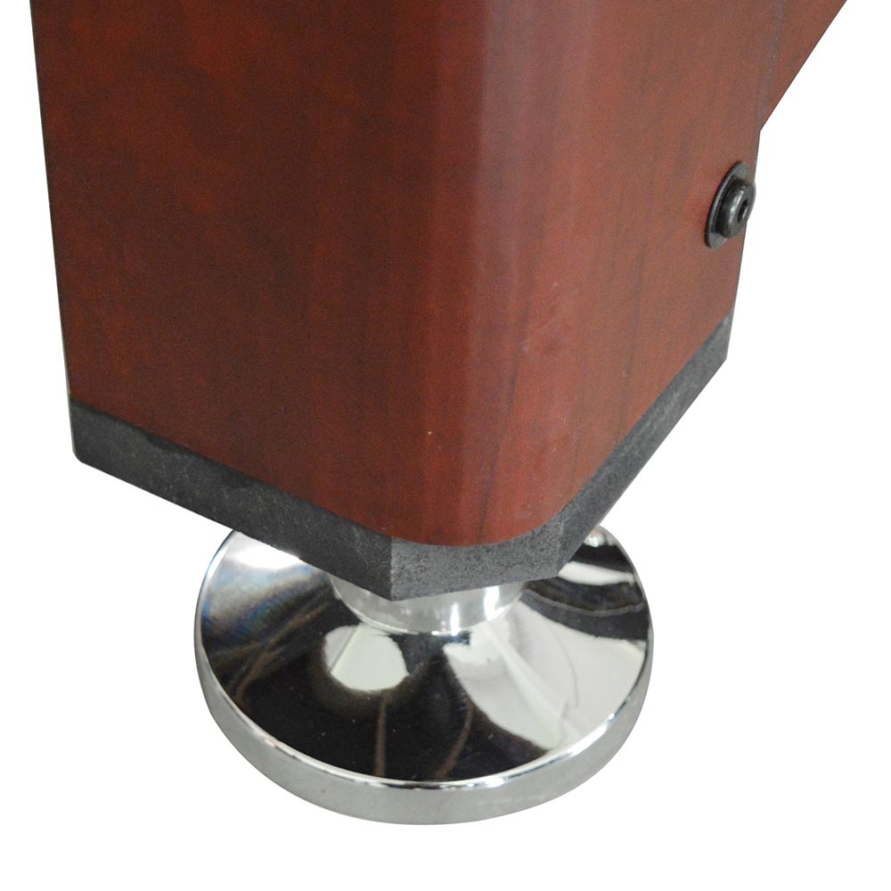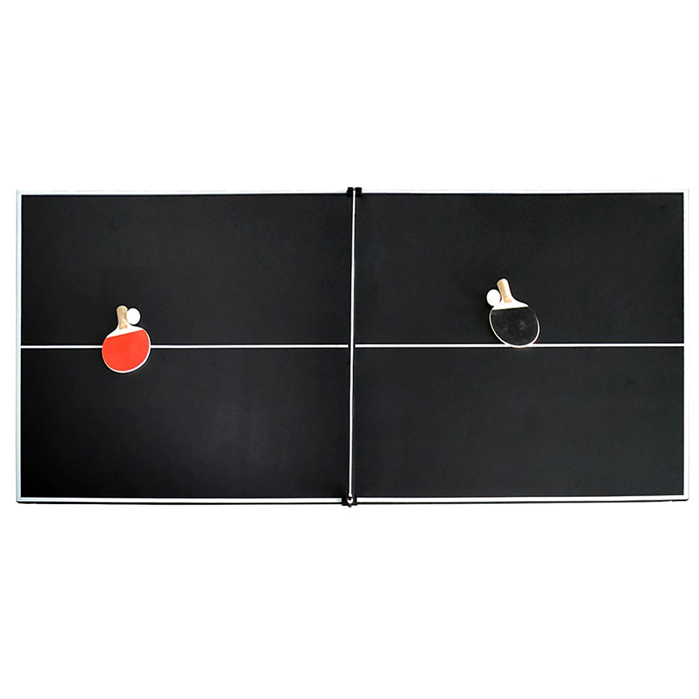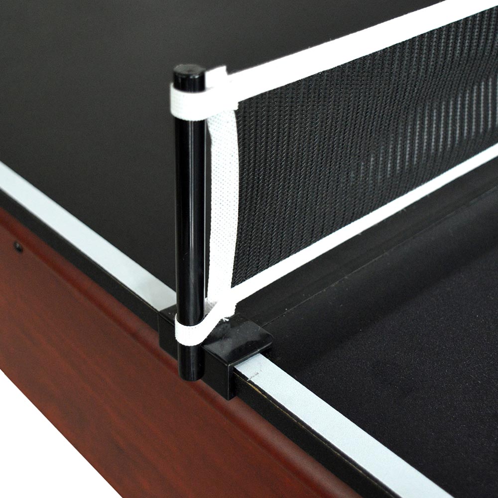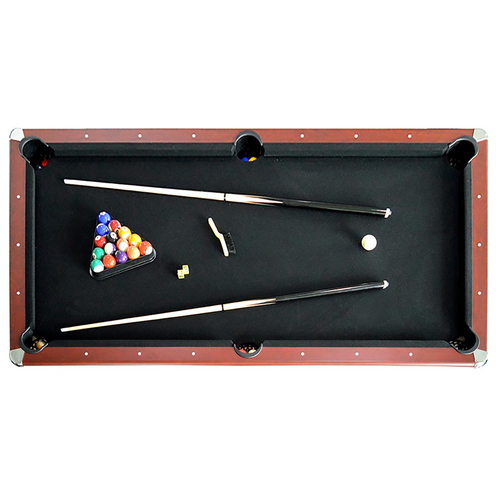 The Bristol 7 ft. Pool Table has the perfect combination of quality features and a compact size to easily fit in any room. The combination of the dark cherry melamine cabinet finish and chrome-plated corner caps instantly creates a stylish addition to any game room. Durable black plastic molded drop pockets and EVA rubber cushions for accurate and fast ball rebound round out the great features on this billiard table. The included quick change over table tennis top adds another dimension of competitive fun within the same space. This set includes all the accessories you need to play pool and table tennis. Certain to provide hours of competitive gaming fun for you, your friends and family! 180-day limited warranty.