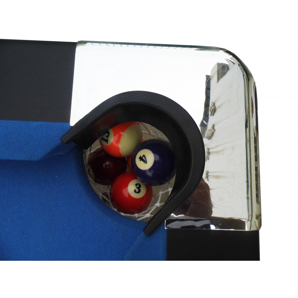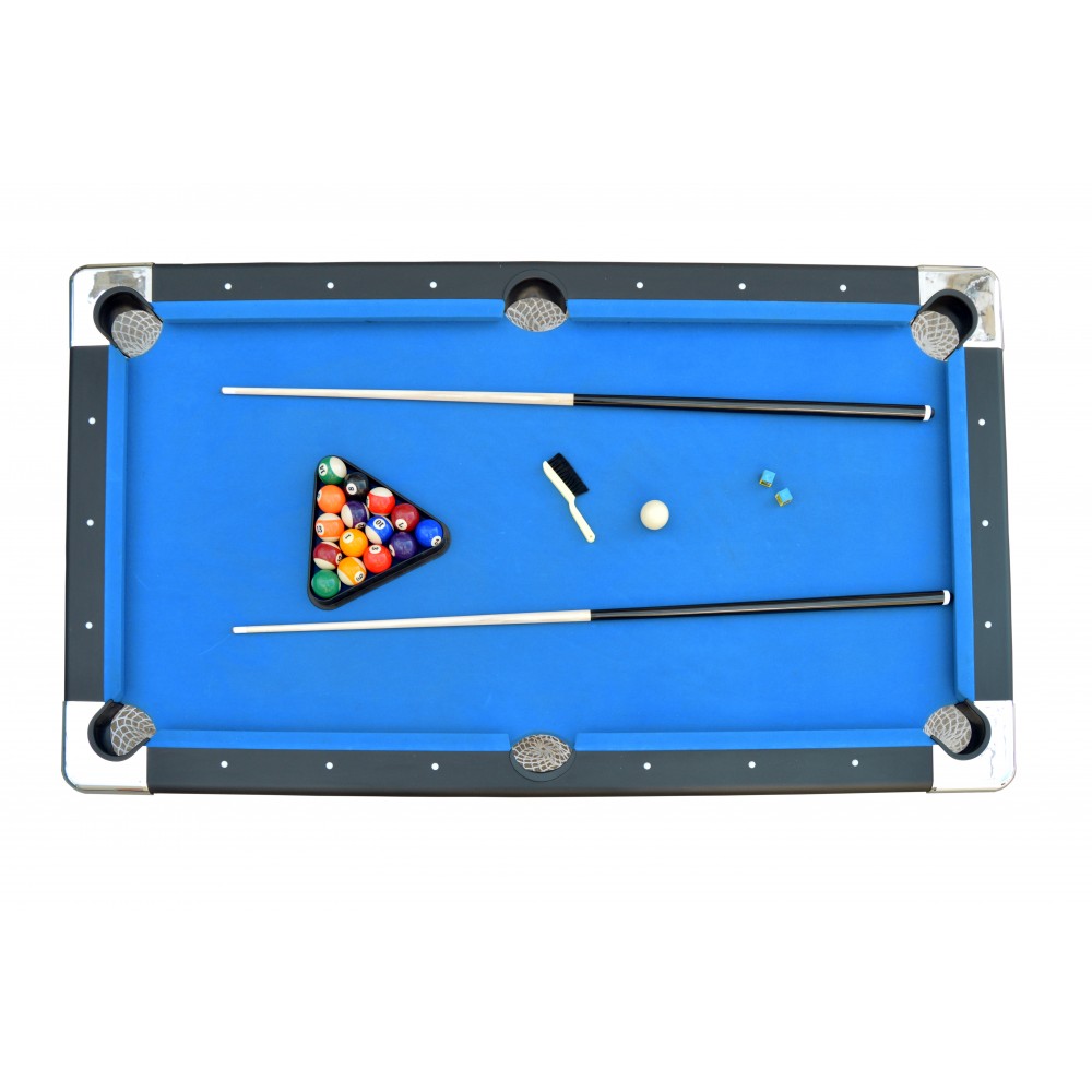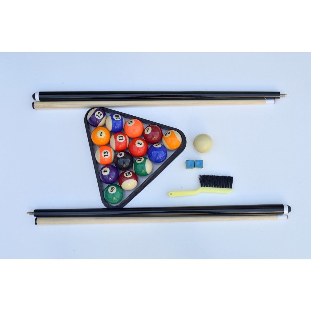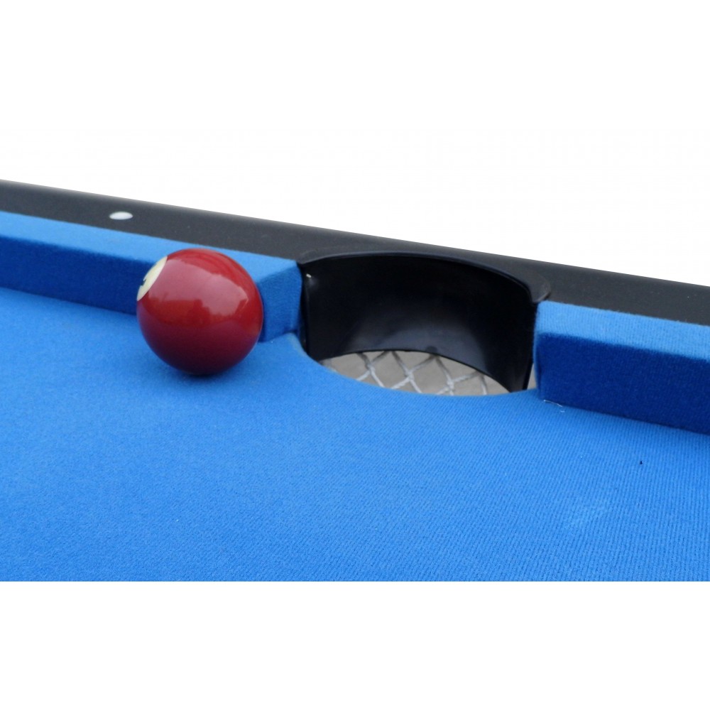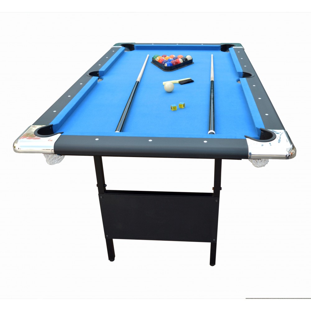 This unique 6 ft. Pool table was specifically designed for smaller spaces and portability, but don't let its size fool you, it's packed with many quality features found on much larger more expensive tables. Featuring 5 inch wide top rails wrapped in a durable black melamine, fast action cushions, a "True Roll" play surface covered in a high quality, hard wearing blended wool cloth. The table is fully supported by strong metal folding legs with levelers, super easy to set up and even easier to store. This table is certain to provide hours of fun and competitive play for both children and adults alike. Includes a convenient nylon rip resistant carry/storage bag and all pool table accessories needed to play a competitive game of pool. 180 Day Limited Warranty.