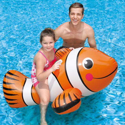 This pool toy is sure to be a favorite! Kids will love to hitch a ride on everyone's tropical favorite, the clown fish. The bigger the better with ride-on inflatables and this one is sure to take your kids on some great journeys in the deep sea. A full 67 inches long! Featuring two sturdy grab handles and heavy duty vinyl, this ride-on will make a splash at your family gatherings. Product dimensions: 67 inches long. 90 day warranty.